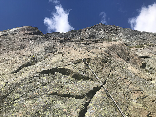 Jeg hadde lest artikler, sett bilder og Youtube videoer av ruta, men det var faktisk tøffere enn jeg hadde forestilt meg. Trodde ikke det var SÅ loddrett opp fjellveggen der!