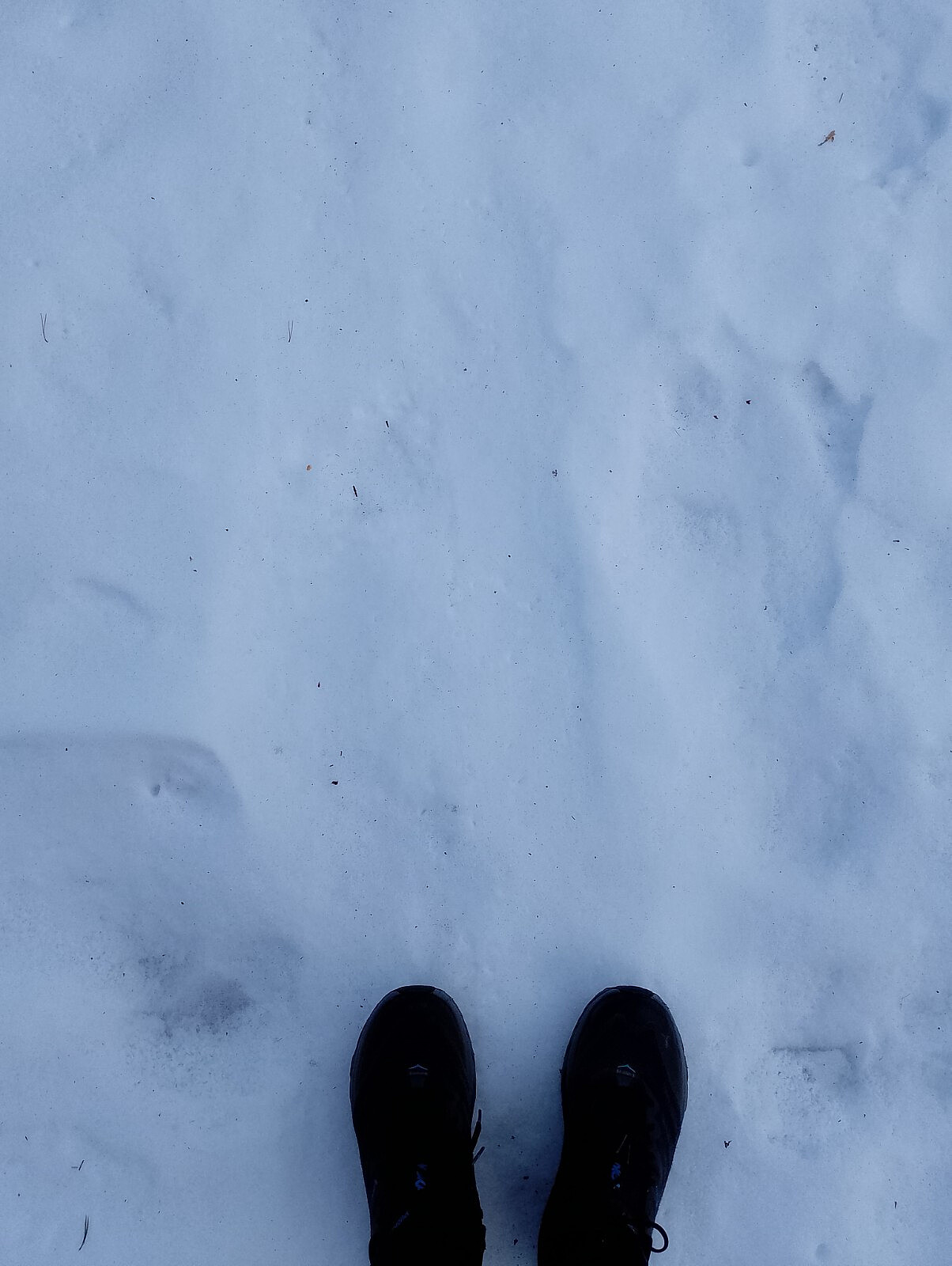 Returen gikk greit helt til jeg kom ned i skogen. Etter å ha omgått og håndert snø og is greit så langt, feide en "usynlig" isflekk plutselig beina under meg, og jeg smalt høyre sida rett i en oppstikkende stein. Om det var noen i nærheten, blei det sikkert skremt av hylet og ynkinga >>>