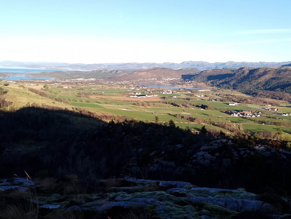 Fra oppstigninga til Hogstadfjellet mot Frøylandsvatnet og Hommersåk.