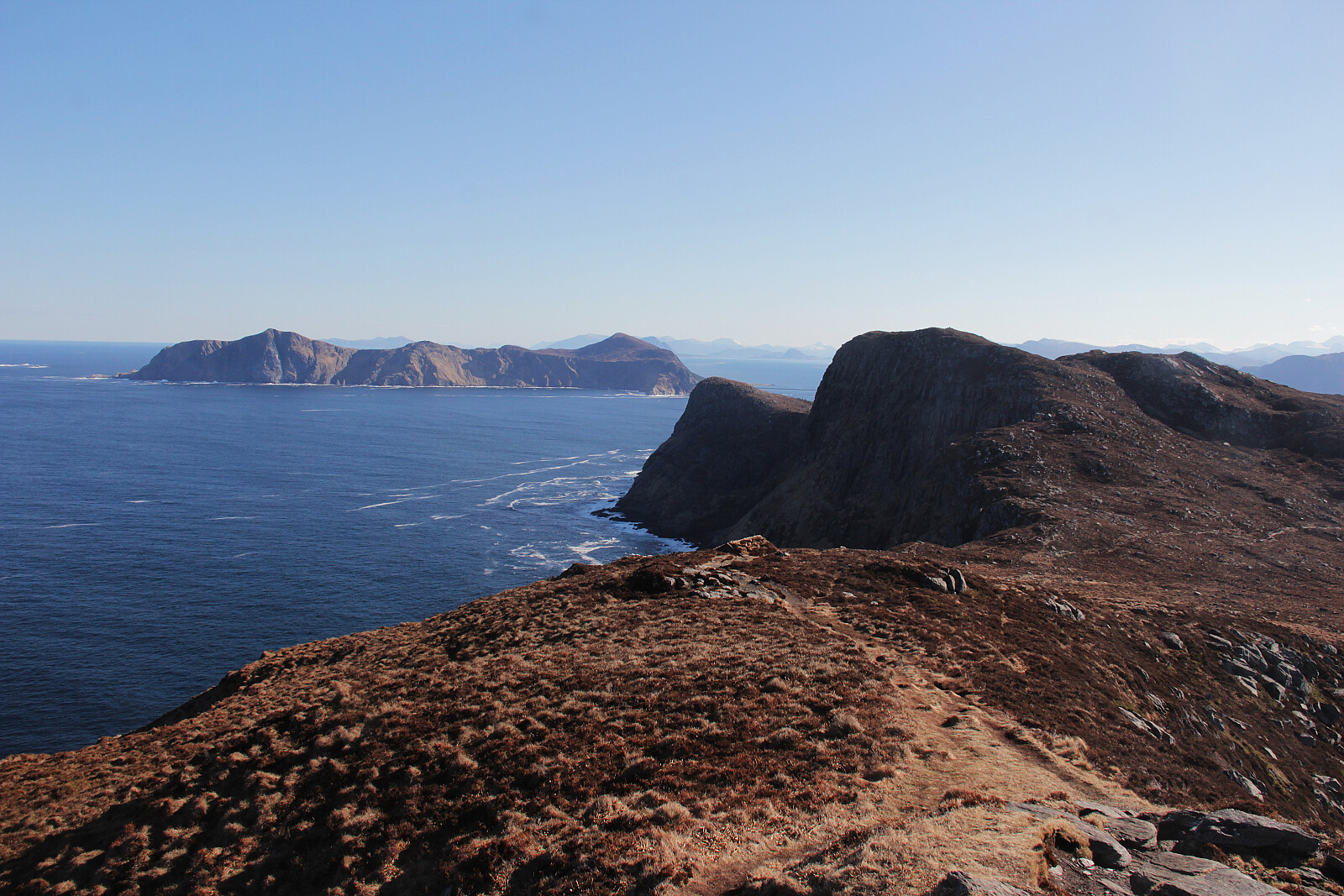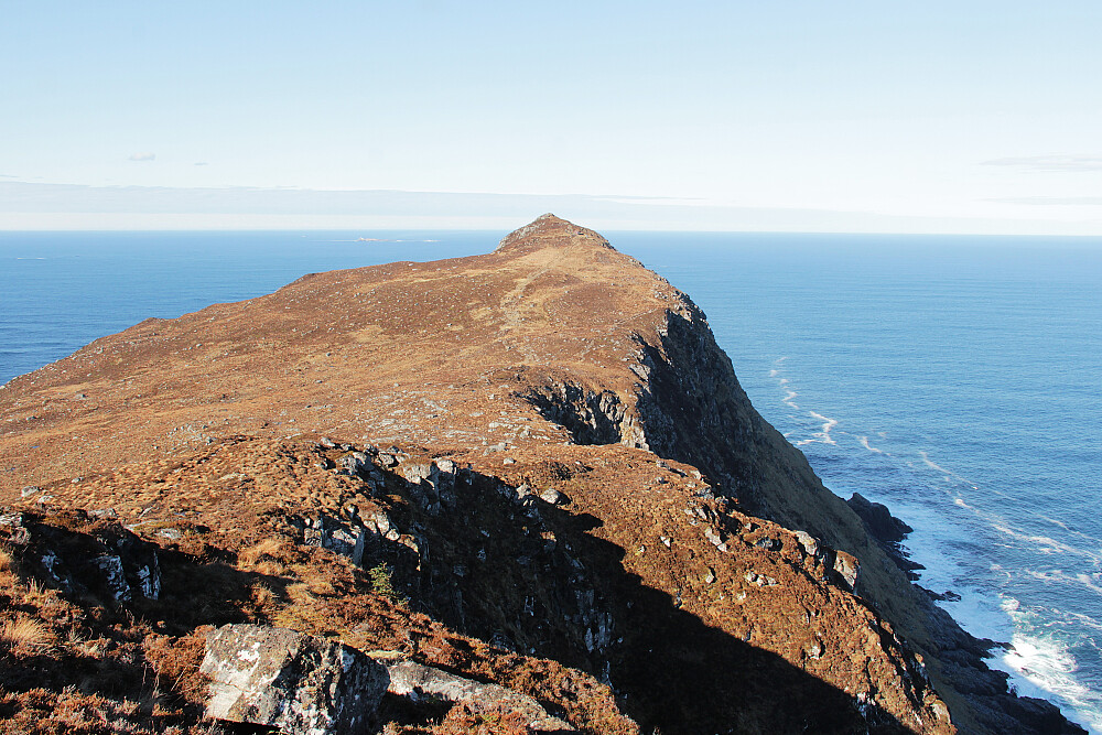 Planen var å gå på Muletua og Barmen, for deretter å dra videre til andre turmål. Det var imidlertid så fint der ute at jeg fullførte traversen langs hele fjellryggen til Golleneset. Artig og bratt sti ned til neset forøvrig. Fint tilbake langs stranda til Kvalsvika. Tanken var kanskje å skrå opp på stien som går litt oppe i fjellsida. Bomma på et vegvalg, og da endte jeg med å gå bilvegen tilbake istedet. Flott rundtur!