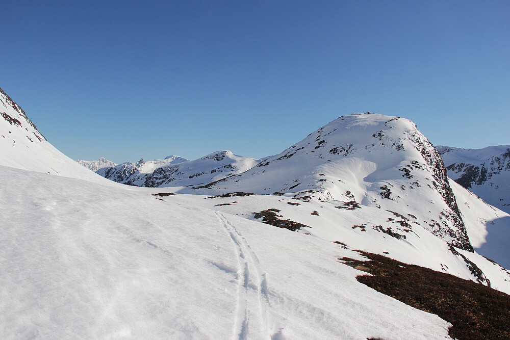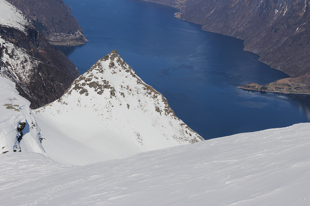 Fra oppstigninga til Utolhornet mot Nessethornet. Leira nede ved fjorden.