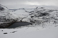 Ski fra bil, blei verre med ski til bil. Med drøye 100 hm igjen var det steintreff i hver sving, så da kom skia på sekken. Lavt skydekke som akkurat letta for godt i det jeg kom opp på Alnestinden. Dermed frista det med en tur bort på Finnan også. Fine forhold over 1100 meter. Kram/fuktig snø helt til topps. Tynn skorpe på retur i skyggen av Alnestinden.
