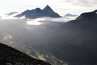 Mot Vassdalstinden og Saudehornet fra Risanakken.