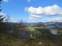 Startet som de fleste andre ved skogsveien rundt 900 meter etter Gausereide. Fulgte jordete og delvis bløt sti opp til flaten på ca 110 moh. Her var det nå nymerket sti på vestsiden av fjellet. Dette skjønte vi etter hvert var grunnet store rotvelt på "gamlestien" på nordkammen. Uansett, stien var meget godt merket, men foreløpig lite brukt. Vi tok en kvikk lunsj pause på utsitspunktet, før vi la i vei videre. Nådde toppen etter litt under en time og fant en fin plass til lunsj med utsikt mot NØ.