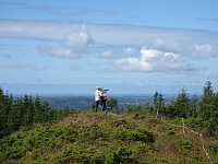 Turen opp tok 35 minutter, med ganske mange blåbærstopp på veien. Ikke noe særlig utsikt fra toppen, men tid til kjeks og drikke før vi returnerte til bilen.