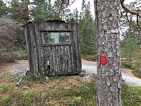 På bomveg fra Grorud, 65,- til skogeierne, på fantastisk rett skogsvei, ca. 5-6km østover. Parkerte ved vegen på et høydedrag, på noe som lignet en liten p-plass. Herfra var det ca. 1,2 km rett nordover, ørlite vest til toppen. Stien fant jeg ikke så her ble det kompasskurs og bushing.