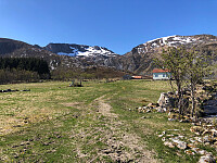 Svært bratt rygg, med snøbre i renne opp øst for toppen. Noe krevende rutevalg.Med Rusla.