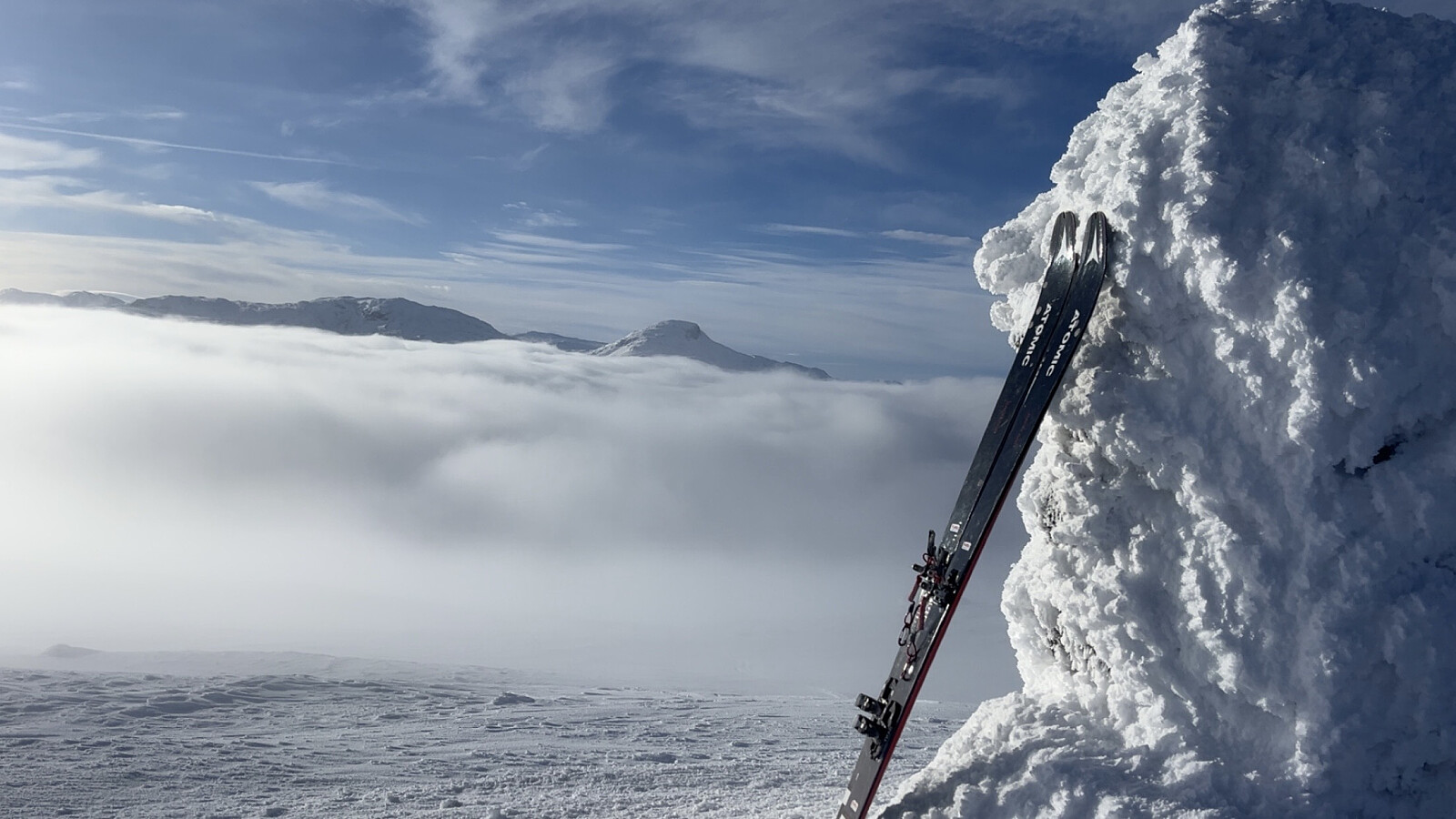 25 minus, fem timer alene i fjellet. Dyp pudder i oppstigningen vest for Bjørndalstjernet og magisk utsikt fra Slettningsegge. En perfekt dag.