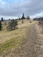 Bommen var åpen og jeg tok sjansen på å kjøre oppi hyttefeltet og parkerte like ovenfor stistart ved skiltet. Fin rundtur og lunt i skogen. Ingen utsikt fra toppunktet, men nydelig utsikt vest for mot fjorden, Nesbukta og Moss
