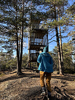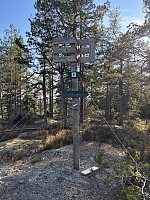 Svingte av fv. 1574, og inn på skogsbilvegen til Amundsbråtan p-plass . Siste delen av veien hadde rent bort, trolig etter uvær. Fra parkeringen er det skiltet til toppen. Fulgte først et gjørmehøl av et krater etter hogstmaskiner, så noe som lignet litt mer på sti siste biten til toppen. Fint tårn på toppen, men dessverre ingen utsikt.