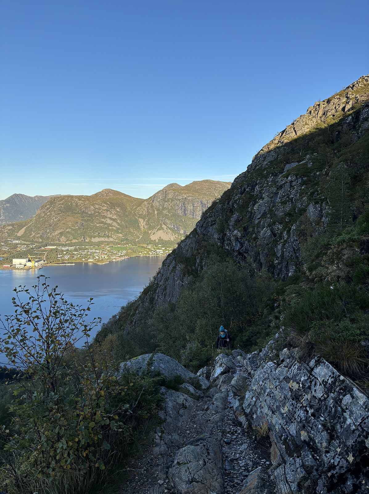 Sent i gang ettersom lang kjørevei. Etter å ha innlosjert oss på Sandneset camping, kjørte vi til Bløkallen P-plass hvor vi fulgte tilrettelagt trapp store deler av turen. Etter ett kjapt opphold på toppen ble det kjapp retur, da minstemann måtte i seng.