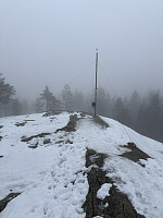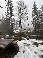 Paradiskollen: Langs Randsfjorden var det sol og mange kilometer sikt, det ble derfor nedtur da tåka viste sin tilstedeværelse allerede ved Roa. Fra den gamle stasjonen på Harestua ble det tåketur langs blåmerket sti til hele veien til toppen. Vardehøgda: Svingte av fv. 1574, og inn på skogsbilvegen til Amundsbråtan p-plass . Siste delen av veien hadde rent bort, trolig etter uvær. Fra parkeringen er det skiltet til toppen. Fulgte først et gjørmehøl av et krater etter hogstmaskiner, så noe som lignet litt mer på sti siste biten til toppen. Fint tårn på toppen, men dessverre ingen utsikt.