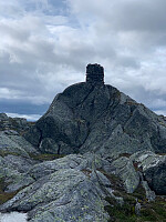 Kona måtte til Oslo med flyet om kvelden, og difor vart ikkje dette meir enn stressmarsj frå A til Å. Etter eit lite feilskjær før brua nede ved Anestølen, starta eg å følge stien oppover dalen. Stien forsvant fort i lyngen. Så då vart det nye feilskjær først mellom busk og bregner, og deretter over våtaste myra. Resultatet vart sprengde lunger før eg nådde Tverråni. Ein liten pause der eg naut utsikta, og inntok energi var heilt nødvendig. Det førde likevel til at eg var bak skjema. Og det skulle snart vise seg umuleg å innhente den tapte tida. Frudalsbreen Og slik fortsatte det oppover fjellet. Konstant bak skjemaet. Eg nådde ikkje eingong Sogndalseggi før eg fant ut at det var best å snu. For no var eg komen til eit punkt det verken var fint eller kjekt lenger. Det var >>>