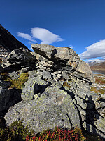 Orset inviterte til rolig langtur på ca 4 t, alternativet var Svarthetta eller Blåhøa. Endte på sistnevnte av ukjent grunn. Flott dag fra start av, men vind var meldt etterhvert. Tok straka vegen opp Blåhøa fra sør, den var i grunn ganske fin men litt løs ur/grus. På toppen kom første snøbyge, og vinden tok seg opp. Raskt videre nedover, så en liten rast i solgløtt før neste heftige snøbyge kom på vei over Falkfangarhøa. Ufyselig og kaldt, og i tillegg litt ute av kurs så endte vi ikke ned til Blåhøtjønna men langt utpå myrene. Så etter endel humping i myr var vi tilslutt tilbake på stien, og etter hvert nede ved bilen der vi møtte Sofie, Signe og Oddrun igjen. De troppet ene Falkfangarhøa, og i snøbygen kom vi litt fra hverandre på turen ned.