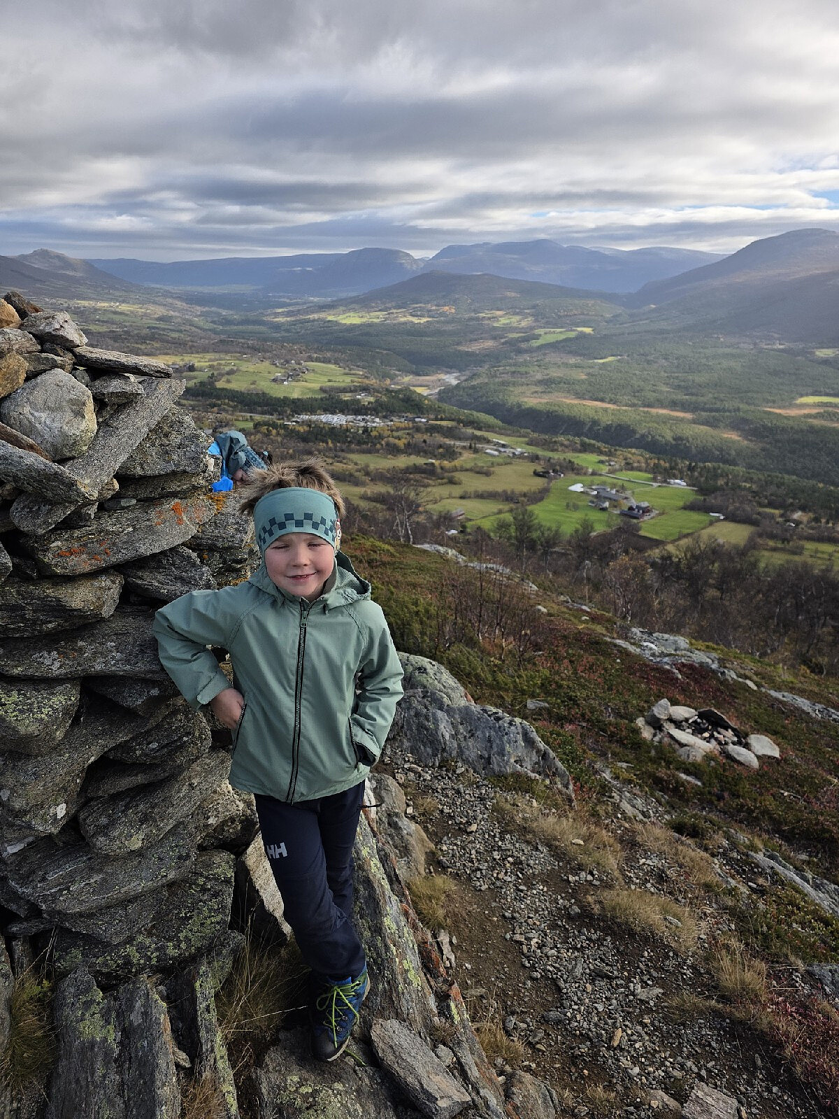 Familietur med store og små fra storfamilien. Gikk oppover lia til stidelet. Anders, Markus og fruen gikk videre til Storhornet, mens vi andre fulgte delvis sti bort til Munkvollhovden. Gikk ned igjen om diverse veier i hyttefeltene på denne fine høstdagen