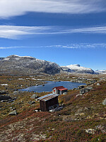 Etter en forsøk på å finne noen gamle tufter ved Store Sandgrovvatnet på morgenen, ble avgjørelsen tatt om å gå på Geitsida idag. Planen var Fossafjellet, men vinden var stri på morgenen gjennom Sandgrovbotn. Begynte turen med å sjekke ut et fangstanlegg ved vann 1085 på nordsiden av Sandgrovsnyta, fant mange bågåstø fra den gangen man jaktet rein med pil og bue. Videre mot Litlehaugen var fin rusletur, sjekket ut en hytte som fjellstyret bruker til tider nå. Ved tjønna før Geitsida lå det også en hytte som hører til en nede i Eikesdalen. Fra toppen av Geitsida er det fin utsikt nordover Eikesdalsvatnet, og til lenger ned mot kanten man går jo råere blir det. Gikk så rett vest og ned til utløpet av Mardalsfossen, litt bratt nedover men fant beste veien ned. Så lite >>>