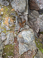 Etter en forsøk på å finne noen gamle tufter ved Store Sandgrovvatnet på morgenen, ble avgjørelsen tatt om å gå på Geitsida idag. Planen var Fossafjellet, men vinden var stri på morgenen gjennom Sandgrovbotn. Begynte turen med å sjekke ut et fangstanlegg ved vann 1085 på nordsiden av Sandgrovsnyta, fant mange bågåstø fra den gangen man jaktet rein med pil og bue. Videre mot Litlehaugen var fin rusletur, sjekket ut en hytte som fjellstyret bruker til tider nå. Ved tjønna før Geitsida lå det også en hytte som hører til en nede i Eikesdalen. Fra toppen av Geitsida er det fin utsikt nordover Eikesdalsvatnet, og til lenger ned mot kanten man går jo råere blir det. Gikk så rett vest og ned til utløpet av Mardalsfossen, litt bratt nedover men fant beste veien ned. Så lite >>>