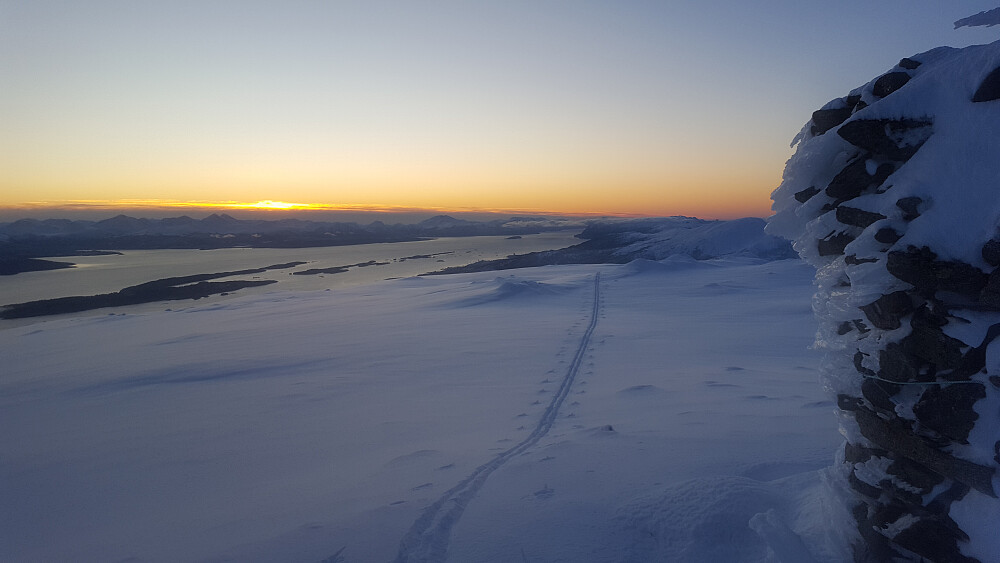 Litt tungt opp lia fra Elsåssetra pga all nysnøen, men en fantastisk tur fra skoggrensa/snaufjellet og videre mot varden på toppunktet.