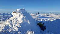 En uvanlig tung skitur med mye vær (vind og tett snødrev) og opptil meteren med dyp puddersnø å baske seg gjennom. Det ble med denne ene turen i dag.. Vi så ingen andre på toppen :)