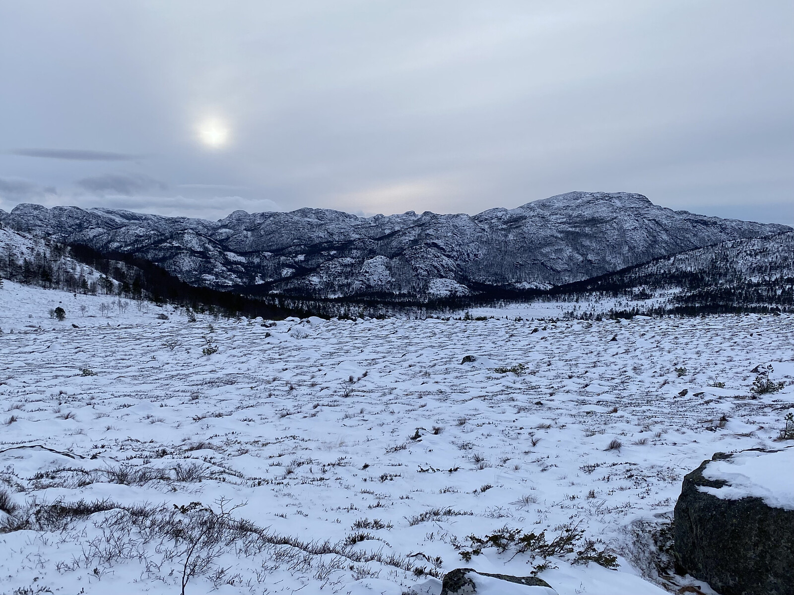 Tilbakeblikk mot Tysdalsheia med Solknuten og Heiahodnet kjenneslege
