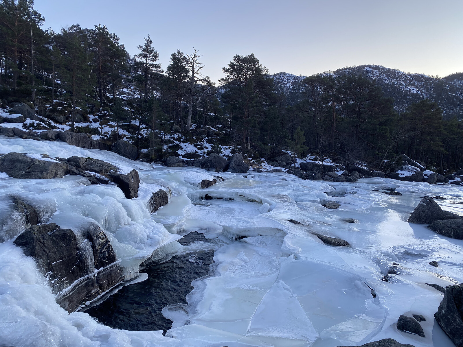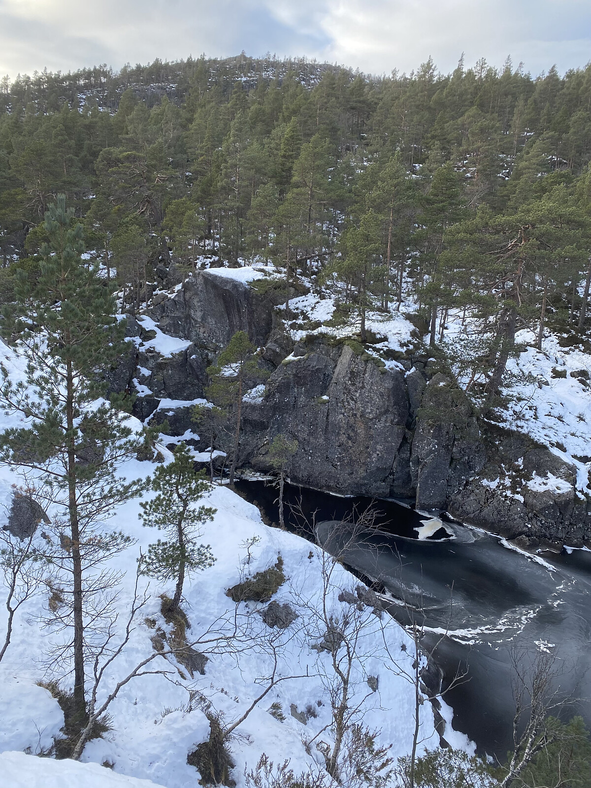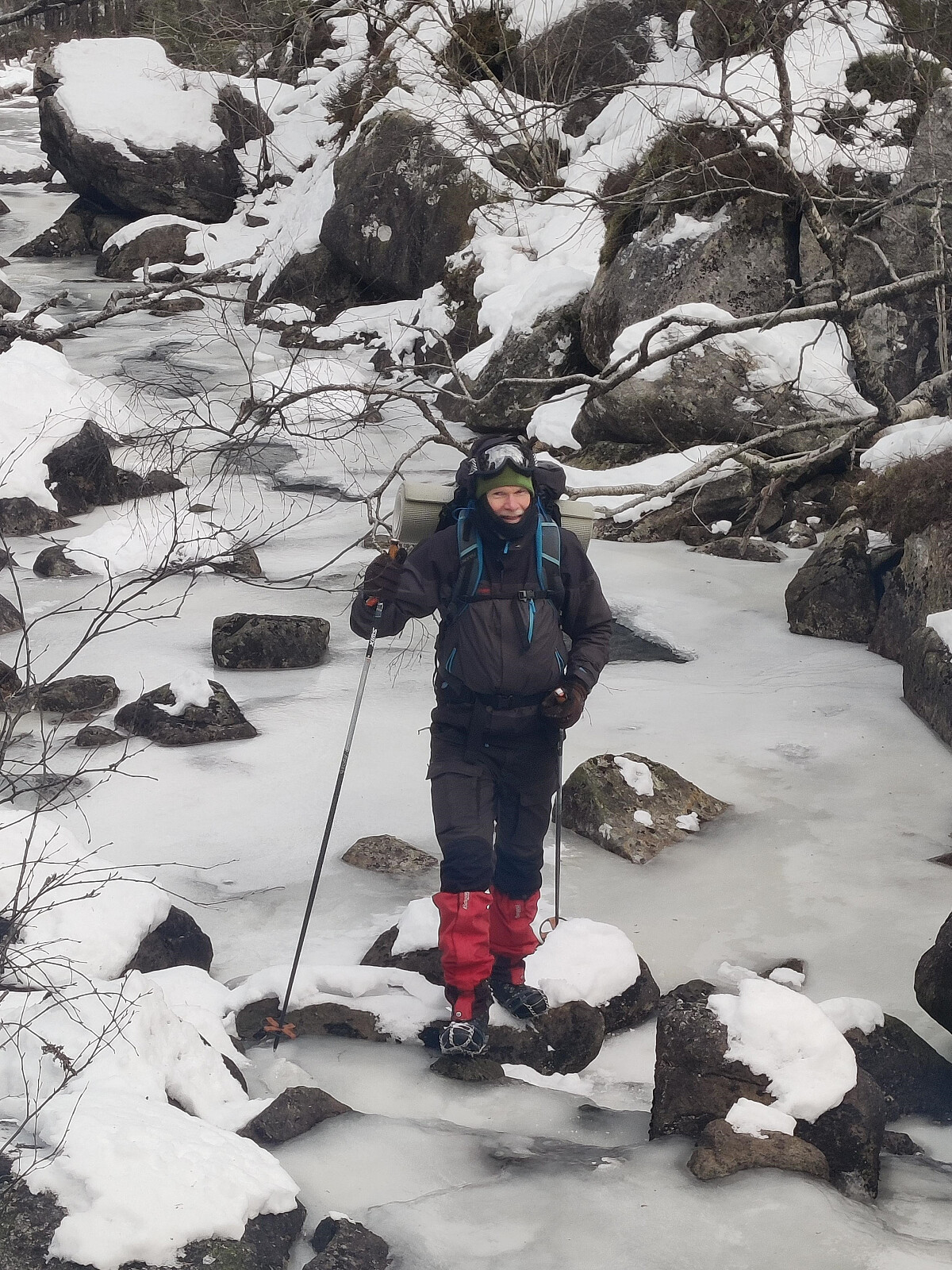Turen opp til Svartavatnet kunne me for ein stor del ta i sjølve bekkefaret, som helst var attfrose. Oppe ved vatnet tok me oss opp på høgdedraget aust for utløpsosen og fekk dagens finaste utsikt, endåtil med solgløtt beint imot. Etter å gått ned på vatnet, rusla me litt forbi holmane, fann oss ei fin livdakrå og retteleg kosa oss på tur.