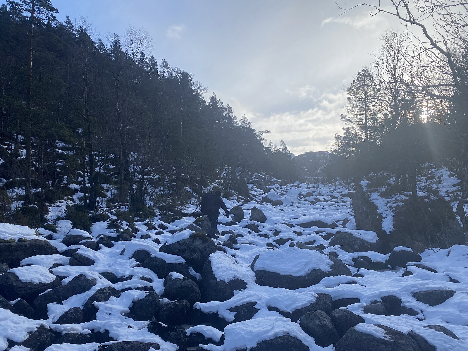 Siste etappen gjekk derfor på den gode og velkjente stien langs Svortingsvatnet til stemmen og ned Lågalia. Her klokka me inn etter 11 km og drygt 5 timar på endå ein minneverdig istur gjennom Jørpelandsheia.