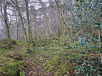 Gikk opp og gjennom tunet til et gårdsbruk og fulgte traktorvei oppover beiteland fra nordvest. Der gjorde jeg en tabbe. Her er det avstengt med høyt gjerde med piggtråd. Etter litt søking fant jeg et sted der jeg kunne trå over. Gå opp fra sydvest gjennom en port så er det sti og fritt frem uten stengsel til toppen.