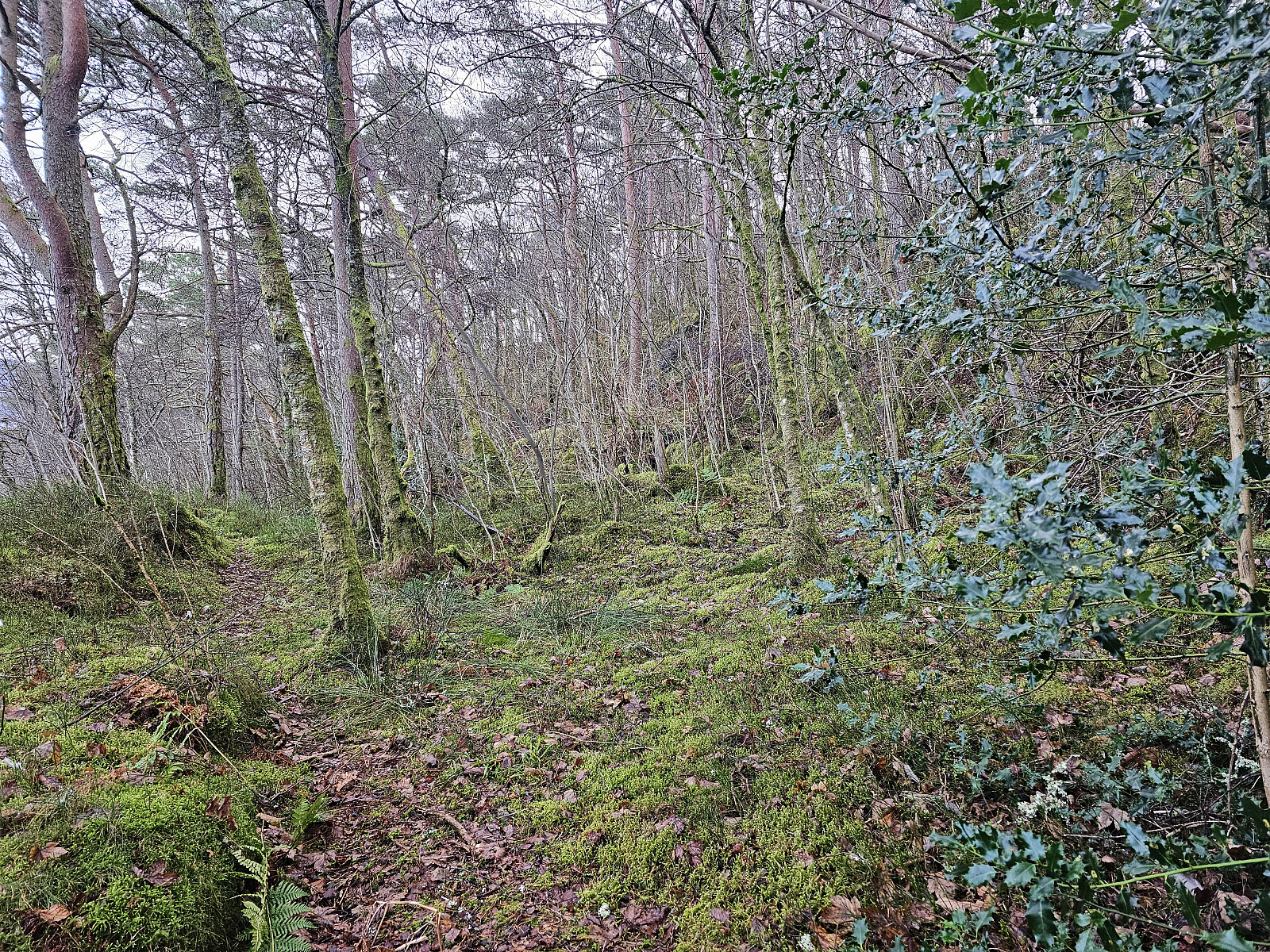 Startet fra Lingavegen rett nord for Campingvognplassen og fulgte skogsveien nordover. Tok av og gikk ned til Storavatnet på dårlig traktorvei. Nede ved Ystavassvika var det bløtt og her stoppet traktorsporet.