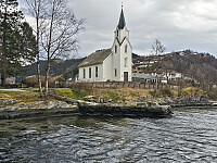 Tur til utsiktspunktet på Fløyen fra Strandebarm kirke. Bratt opp gjennom skog, men fin sti.