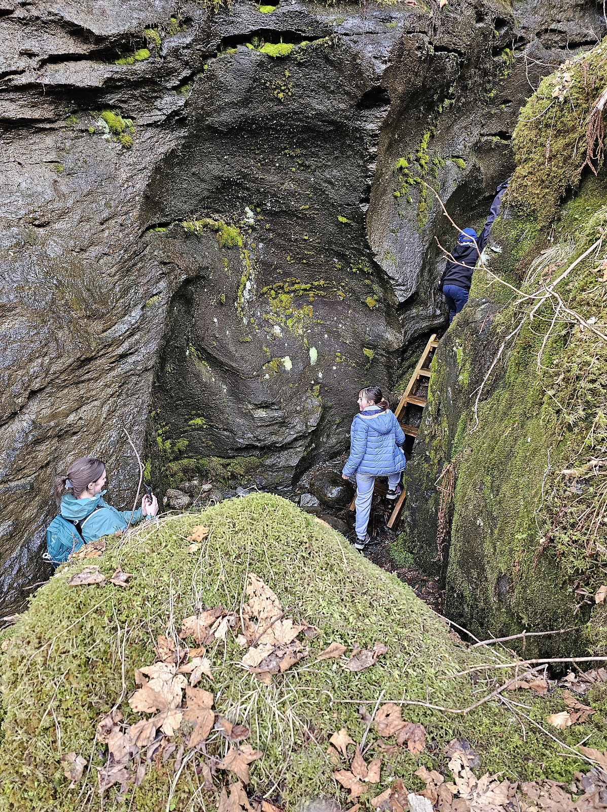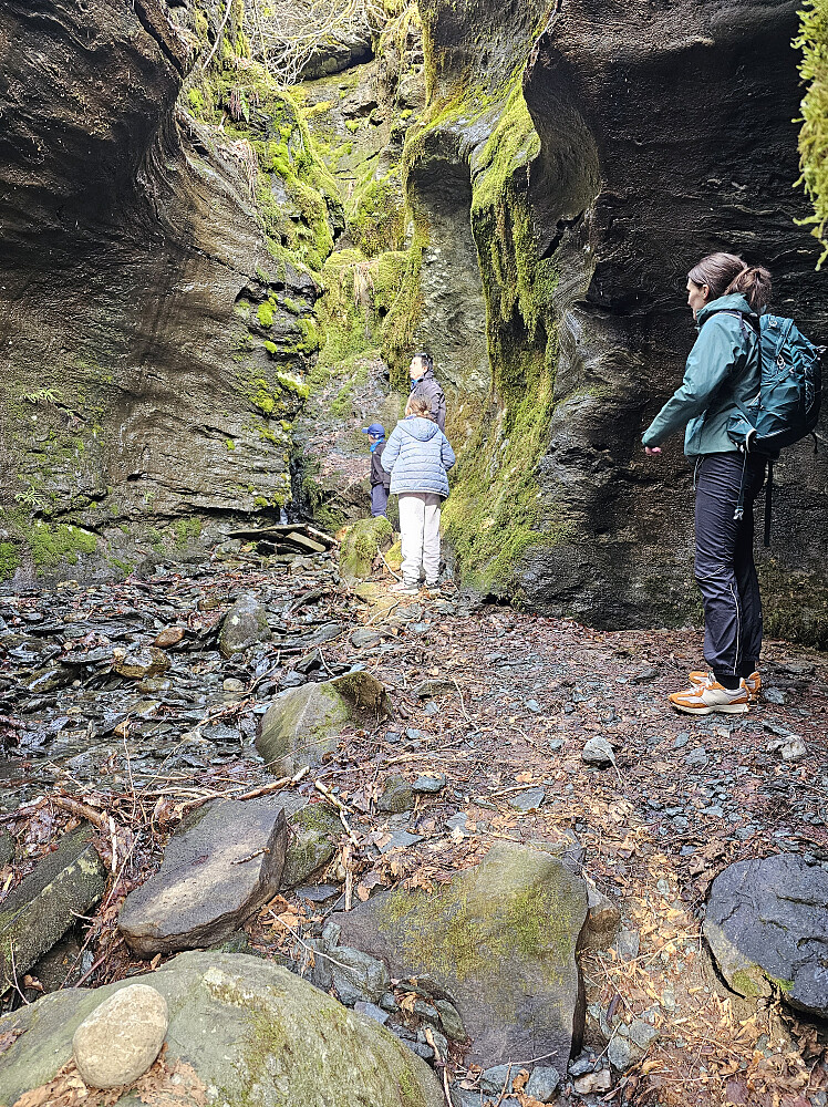 På tur i Strandebarm med påske gjester der vi besøkte Slottet og gikk gjennom Dronningjuvet. En spennende tur for barnebarna gjennom gjettegryter og et gammelt uttørket elvegjel. I gjelet er det sikret med tau og montert tre trapper, men her må vi være forsiktig og ha kontroll på barna.
