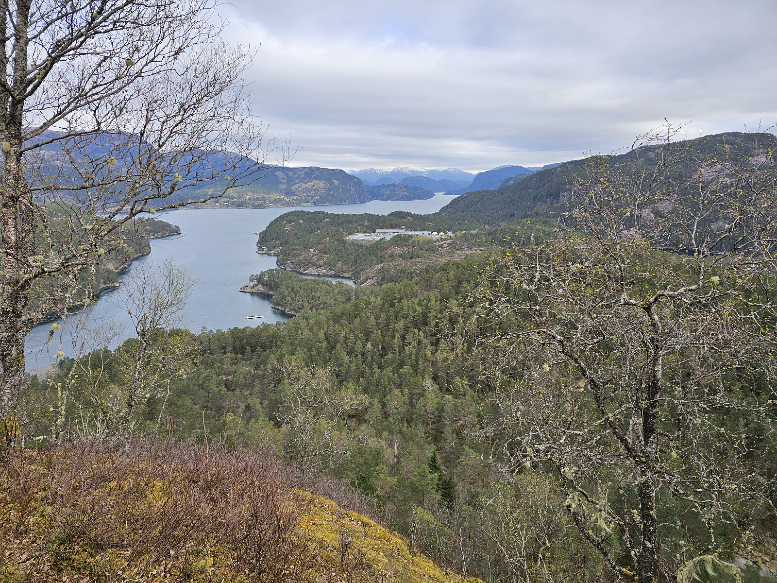 Tur til Kletten en liten kolle som viste seg å være et beiteland for sau og storfe. I dag var det kun sau med mange små lam som var ute. Jeg tenkte at jeg skulle ta en liten omvei for å slippe å gå over innmark og gjennom tunet til nærmeste hus. Ruten jeg tok ble ikke et godt rutevalg. Fikk straks problemer med å krysse solid høyet gjerde men fant et sted der jeg kom meg over. Etter et kort stykke ny hinder med gjerde som jeg slet med. Nesten oppe dukket enda et gjerde opp, her samme utfordringen for å komme over og bort til toppen på kollen. Åpen bjørkeskog på toppen med stup ned not nord.