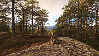 Nydelig dag med såvidt over 0 grader i høyden og minusgrader lavere ned, men vinden var så bitende kald at jeg somlet ikke over tregrensa. Fint å gå i terrenget på steinhard tele. Bommen var nede da jeg kjørte forbi tidligere i høst, så selv om den var oppe nå, valgte jeg å parkere på utsiden.