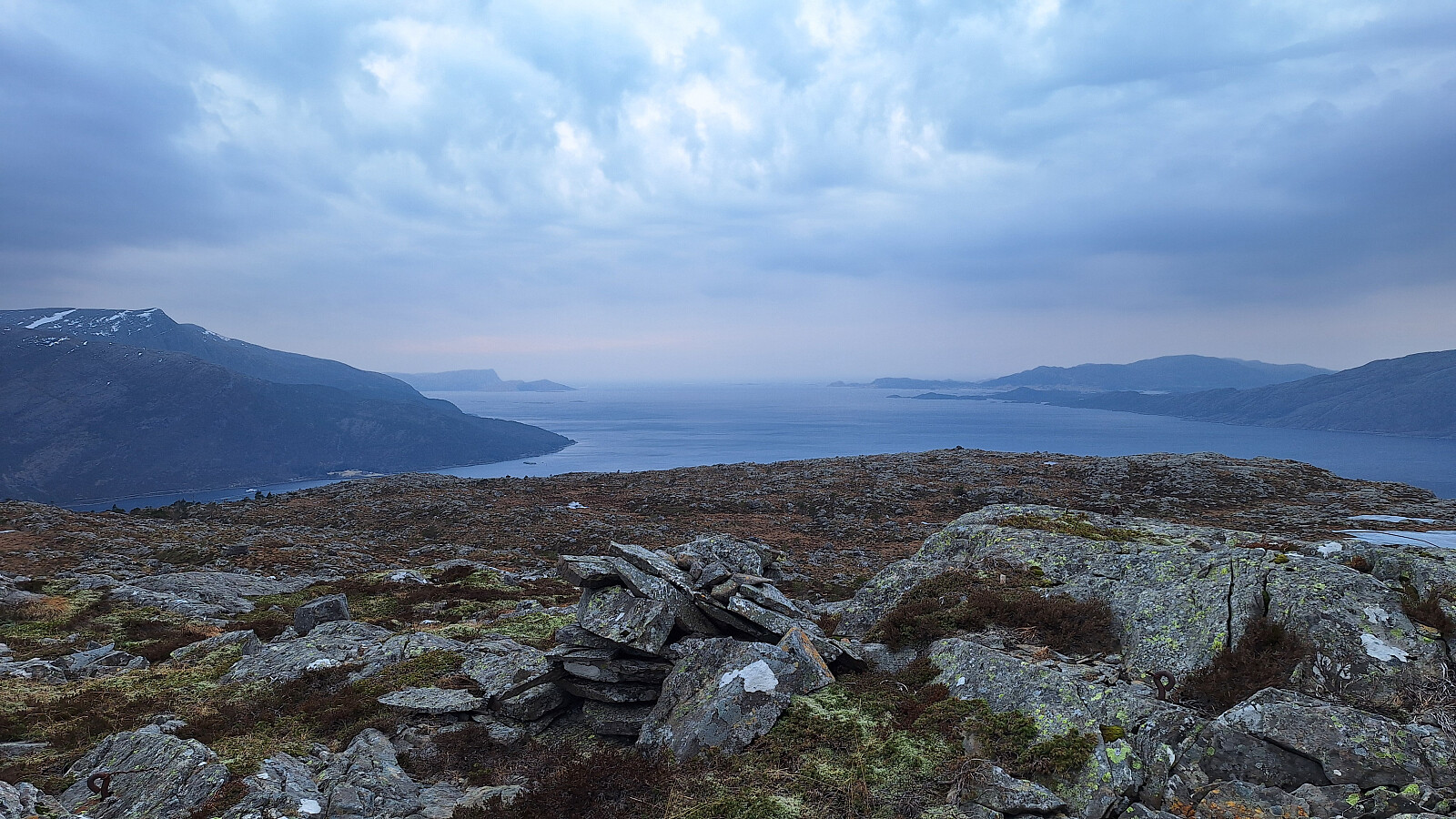 14 grader, solrikt og kraftig vind midt på dagen i Svelgen i dag, og årets første dag utendørs i kortermet trøye :-) Tilskyende og regnbyger før jeg rakk på tur, men varmt i været fremdeles og flott til fjells.