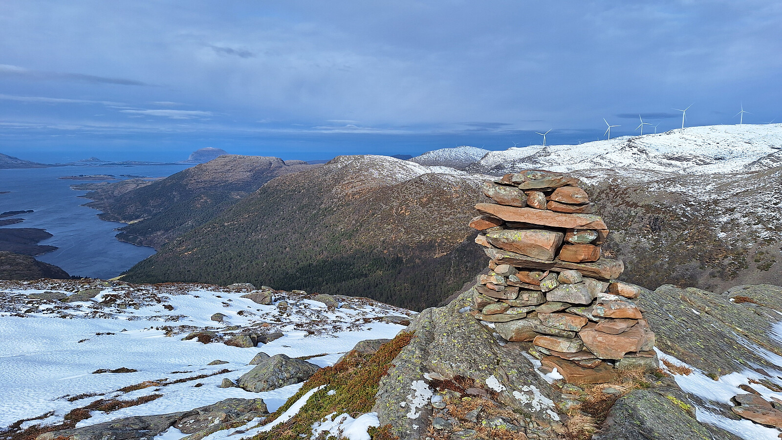 En del snø fra veis ende, og jeg fulgte barmark der det var mulig. Hadde noen gedigne gjennomtråkk i fonner, men det var greit å gå selv om vinden fikk meg litt ut av balanse. Flott utsikt fra toppen.