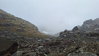 Værmeldingen sa at tåka skulle forsvinne i titiden, og det skulle bli en del sol og vind. Jeg måtte på med alt jeg hadde av klær i motvinden langs Kviesjøen, og etter hvert ble det litt vel mye regn. Ble litt motløs av været som ikke stemte og la en plan B, men så, plutselig fikk jeg et glimt av Rjupeskareggen og øynet håp. Det skjedde ikke noe før jeg var over toppen, men da forsvant raskt plan B, og jeg kunne hive noen plagg igjen. Fryd. Like over Volldalsnosi hørte jeg noe som skrapte mot en stein, og da jeg snudde meg stod jeg ansikt til ansikt med en 4-taggers hjortebukk. Vi ble nok like forbauset begge to og stirret noen sekunder på hverandre før bukken tok med seg de to kompisene sine og løp i et misunnelsesverdig tempo nedover. Ellers var det mange ryper og rypeflokker >>>