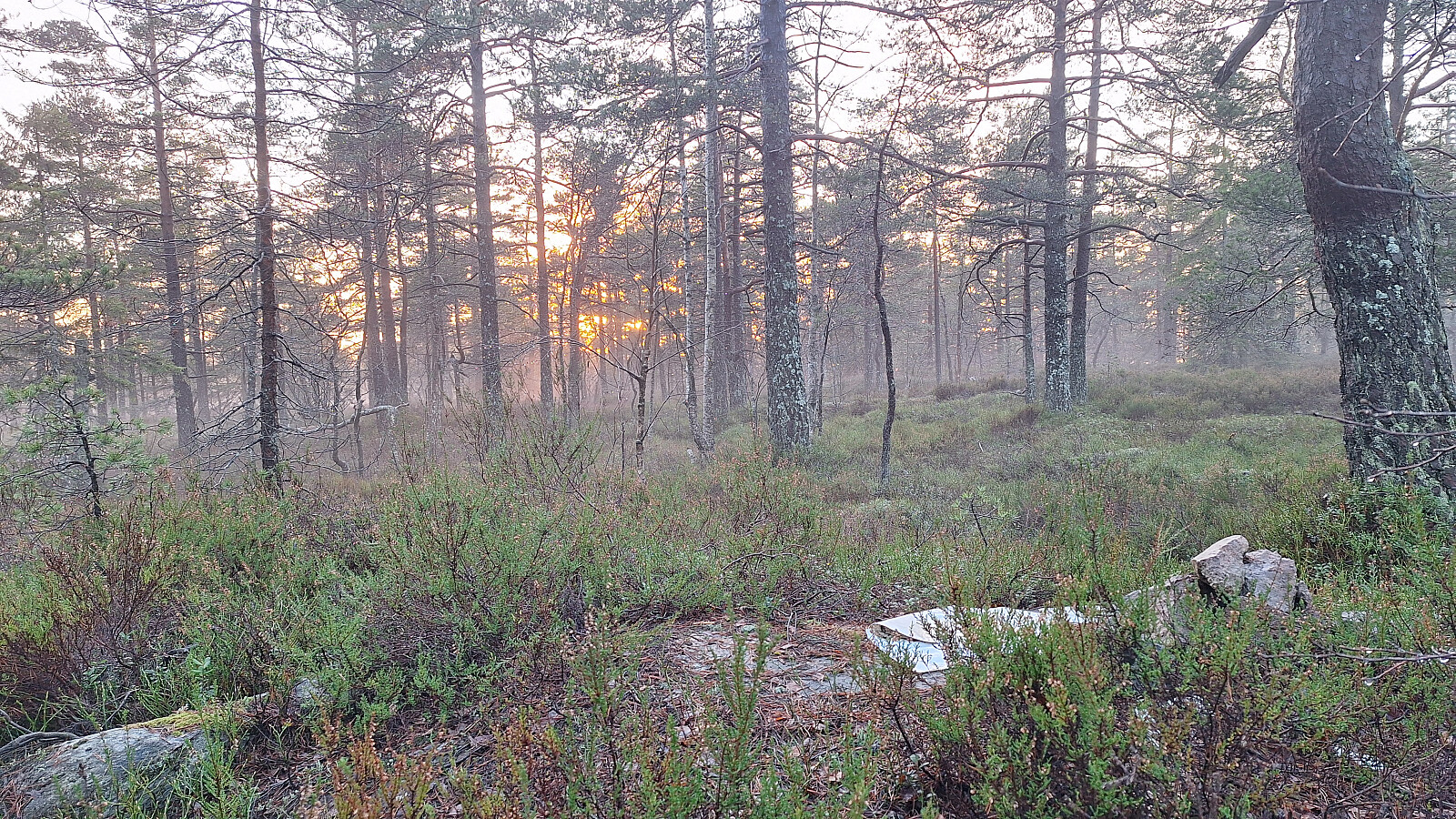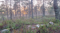 Bustete terreng og glatte sva, men kortkort tur gjorde det overkommelig. Flott utsikt fra den lille haugen og fascinerende vær i alle himmelretninger.