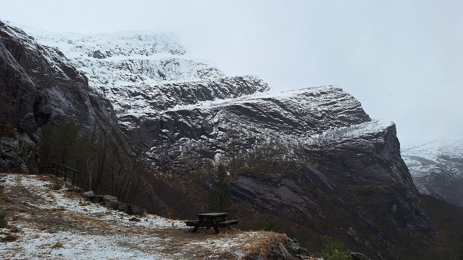 Rikelig med nysnø med blankis under, mye friksjon og skummelt å gå. Prøvde å gå der andre hadde gått, men det var bare et spor til toppen, og jeg kom ut av telling hvor mange ganger jeg holdt på å ramle.