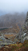 Halvveis i nattejobbingen denne uka, hvilket vil si 20 av 40 timer unnagjort. Til tross for sporadisk og lite søvn funket kroppen greit i dag, og jeg forlenget turen etter Trælvikfjellet og tok med Marafjellet i tillegg. Deilig vær med duskregn, litt vind og 6 grader til å begynne med. Mer og mer regn og vind innover fjellet, men holdt koken uten regnklær.