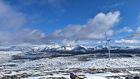 Været er som en jojo. I går datt temperaturen fra +9 til +1 i løpet av dagen, og snøgrensa sank til 200 moh. I dag tidlig var det snø helt ned til fjorden, men før jeg kunne gå fra jobb for dagen hadde snøen krøpet langt oppover fjellsidene igjen. Kald vind, men sola varmet litt. Lumske forhold med nysnøen som stedvis lå i store fonner, så fra toppen kuttet jeg kortest mulig til vei og tok en ekstra runde i finværet.