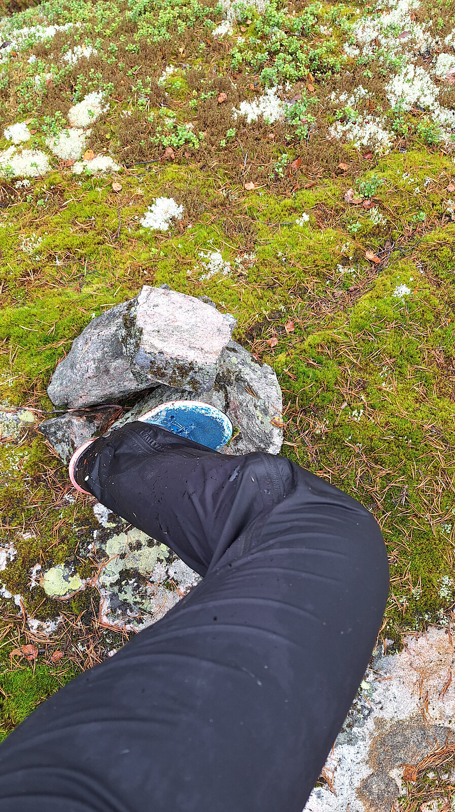 Regnet kom da jeg satte fra meg sykkelen og bega meg opp bratta til fots, og alt ble vått igjen. Sykkel: 8 km.