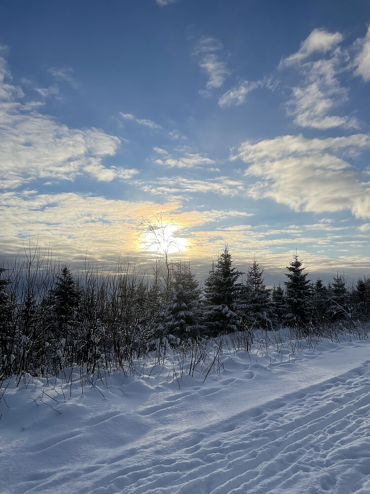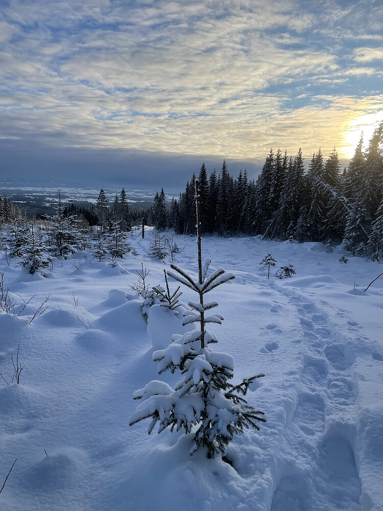 Snøen og vinteren kom seint i gang herover, og nå har det endelig blitt vinter å snakke om her også :) Så da fant vi fram trugene og tok en tur hjemmefra. Det var forbausende mye snø bare noen få km hjemmefra, målte fort og gæli at det måtte være minst 70 cm, og det lover bra for senere skiturer.