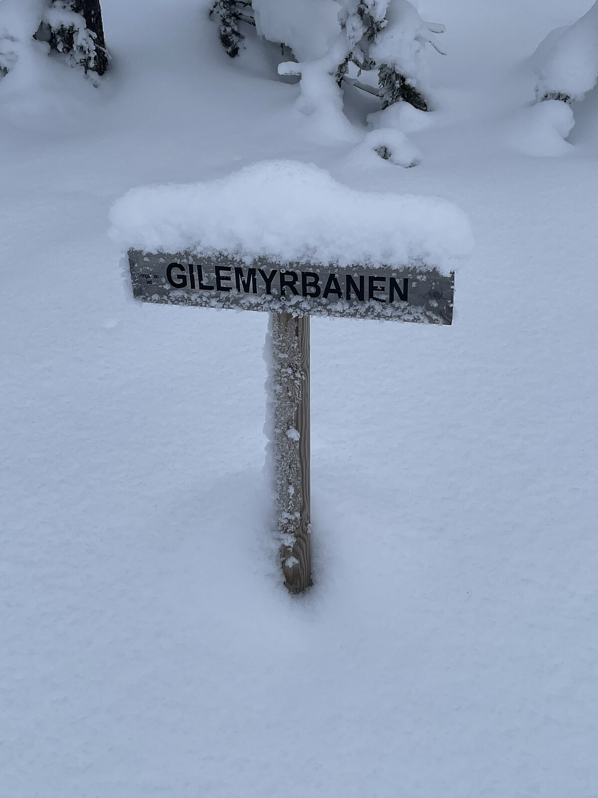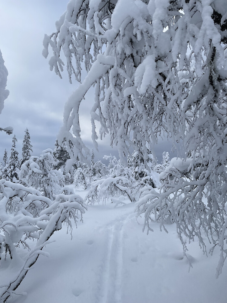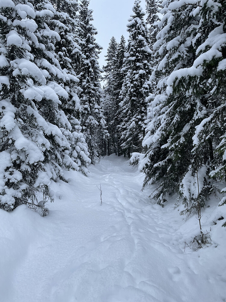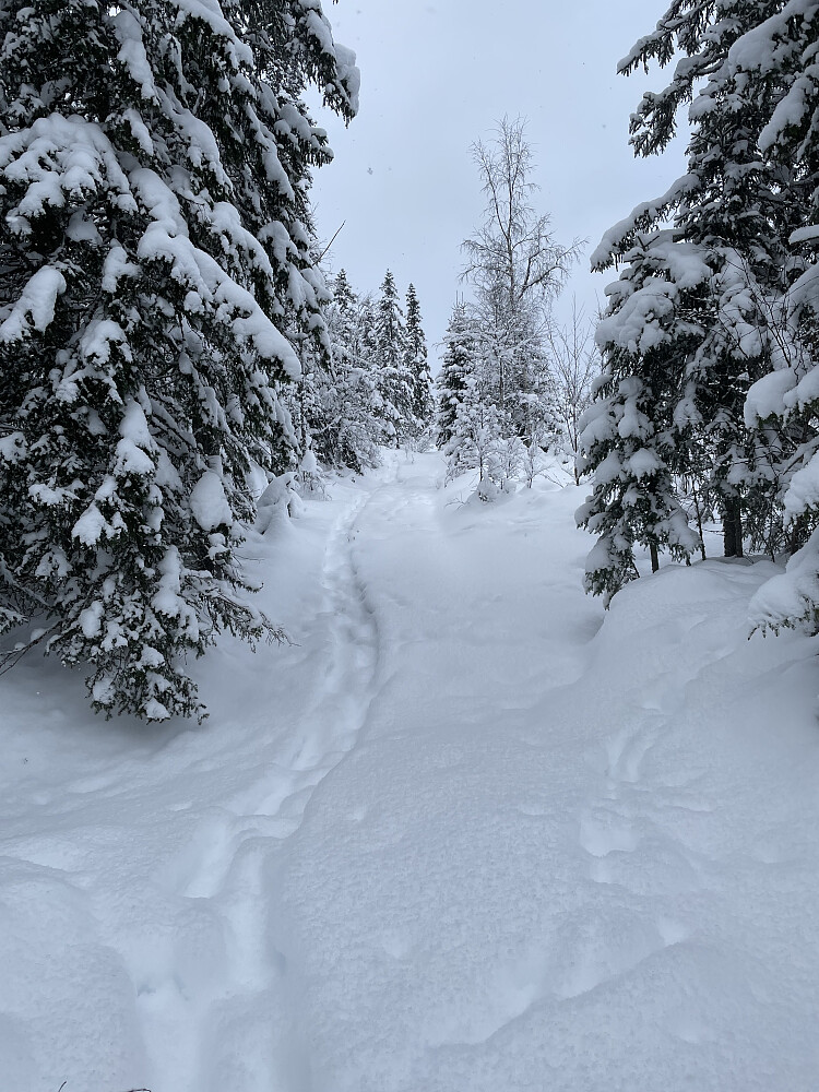 Sesongens første skitur ble en tur rett fra døra, og en tur videre opp fra trugesporet vi begynte på forrige helg. Etter å ha surret litt utenom et hogstfelt endte jeg opp på Gilemyrbana.