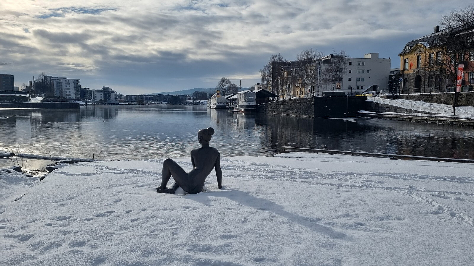 Koselig tur med Berit på steder vi ikke har gått før. Gikk ned på høyre side av slusene. Det er ikke mulig å gjøre i sluseperioden. Nå var det også veldig glatt der. Lunch på toppen av slusa.