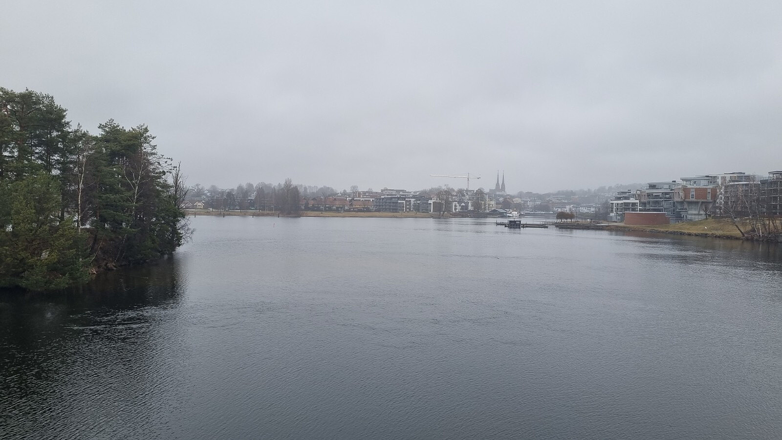 Men vårstemningen er her til tross for tåke og gråvær. Fuglene synger og her fant vi gåsunger midt i asfaltjungelen på broene i Skien.