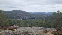 ENDELIG ble det finvær og tid for PF topper igjen. Sissel og jeg snakket om å prøve å gå et par Drangedalstopper. Vi utstyrte oss med truger, brodder og gamasjer og kjørte opp på p-plassen der andre har gått fra. Sissel hadde forberedt en tur som ca fulgte Arvid1965 sin tur. Da vi parkerte bestemte vi oss for å ikke ta med brodder eller truger. Lurt valg, det var ikke mye snø på turen og det som var var ikke vanskelig å finne vei rundt. Fulgte traktorveien oppover og gikk så litt i terreng, litt på noen "traktorveier". Måtte gjennom noen hogstfelt, men det gikk fint. Det lettet 7 store fugler foran meg da jeg kom opp en bakke, vet ikke helt hva det var, men de var store, mulig ung orrfugl? På toppen er det ikke utsikt, men litt til høyre utpå kanten kunne vi skue >>>