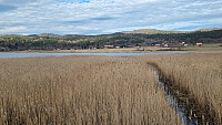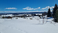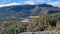 Traff bonden og fikk parkere der. Han tipset oss om at om vi gikk litt tilbake på veien og kjørte inn grusveien, kunne vi parkere der. Vi gikk inn denne veien og tok inn på den gamle traktorveien, slik bonden sa. Fin merket sti helt opp til utsiktspunktet. Toppen ligger litt til høyre før du kommer til utsikten. Tok en matbit og nøt den flotte utsikten før vi fulgte merket sti ned igjen til grusveien. Gikk videre inn grusveien og opp den bratte, gamle slepa opp langs bekken. Litt steinete, men fint å gå. Gikk så rett opp lien til høyre på et tydelig dyretråkk. Fin utsikt fra toppen her også. Bonden prøvde å forklare oss at vi kunne gå ned igjen på andre siden, ikke så bratt og steinete sa han. Vi fant den merka stien og fulgte den nedover, men mistet den litt nedi der. Gikk >>>