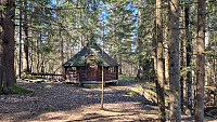 Tur nr to i gråværet i dag. Med det været vi har hatt her i vår er vi egentlig glad for dager med oppholdsvær. Vi parkerte i oppkjørselen til den nedlagte gården på Li. Fulgte sånn ca Arvid1965 sitt spor oppover til toppen. En kjedelig topp uten annen utsikt enn skog. Gikk over alle kandidatene til toppunkt, men tror at der stiften står er høyest. Hyggelig pause her før vi gikk ned igjen. Vått å komme over bekken i skaret her i dag. Hogstfeltet vi gikk i til begynnelsen av turen, var overraskende fint og ryddig. Nå blir det en stund til neste tur, da familiebesøk vestpå er på plakaten.