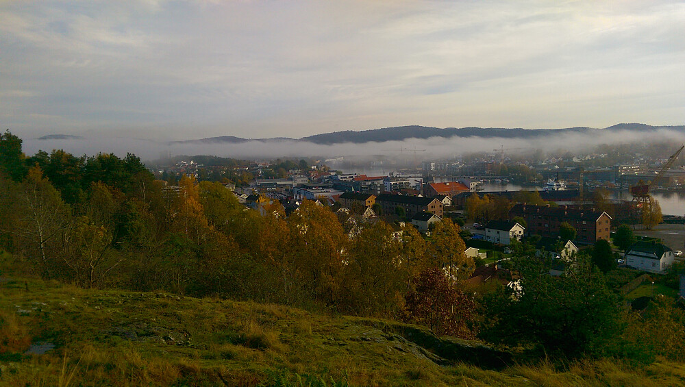 Satt og slappet litt av og nøt utsikten over Porsgrunn, før vi gikk ned igjen stien østover og gjennom kirkekgården og til parkering.