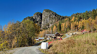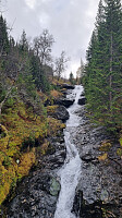 Etter en, for meg, hard uke med bygging av terrasser, innsetting av bobilen, lefsebaking og to topper i Tokke var jeg veldig sliten i dag. I tillegg var det nattefrost og vi hadde sommerdekk. Jeg tenkte at i dag orket jeg ikke på tur. Men jeg manglet 1 topp for å nå 320 topper og Kristen var veldig klar for en tur. Jeg lot meg motvillig overtale, men tenkte at jeg nok ikke kom til toppen, derfor tok vi ikke med oss Berit og Jan slik vi tenkte vi skulle. Parkerte ved det fine utsiktspunktet ved bakeriet og gikk inn veien til siste hus. Her startet en traktorvei og allerede ved husene kom vi til den første rotevelten. Bra oppover videre til rundt svingen, der lå det et par trær vi måtte rundt. Videre oppover var det trær over alt, noen kunne vi krype under, men noen måtte vi omveier >>>