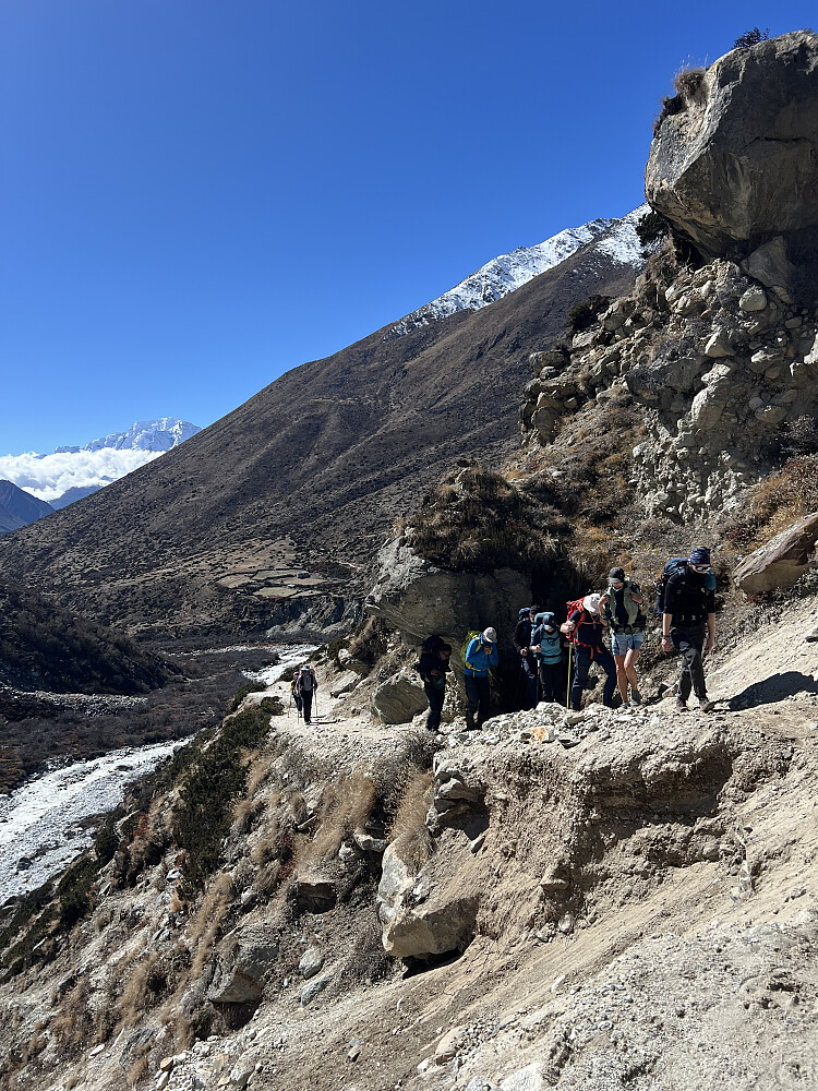 Transportetappe fra Pangboche til Dingboche. Laaang testopp i sola i Shomare. Vi brukte god tid på turen, og nøt synet av Lotse, Ama Dablam fra nye vinkler Island Peak, Sholatse og første ordentlige synet av sjølveste Loboche:) Etter sen lunsj i Dingboche, nøt vi teen i solveggen. Riktig påskestemning i dag også. En liten rusle tur i «byen» - før avslapping og middag.